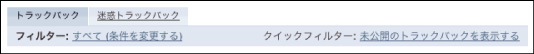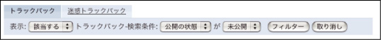 また、[エントリーフィルター]の右側にある[クイック検索フィルター:未公開のトラックバックを表示する]リンクをクリックすると、公開の状態が[未公開(下書き)]になっているトラックバックのみが表示されます。