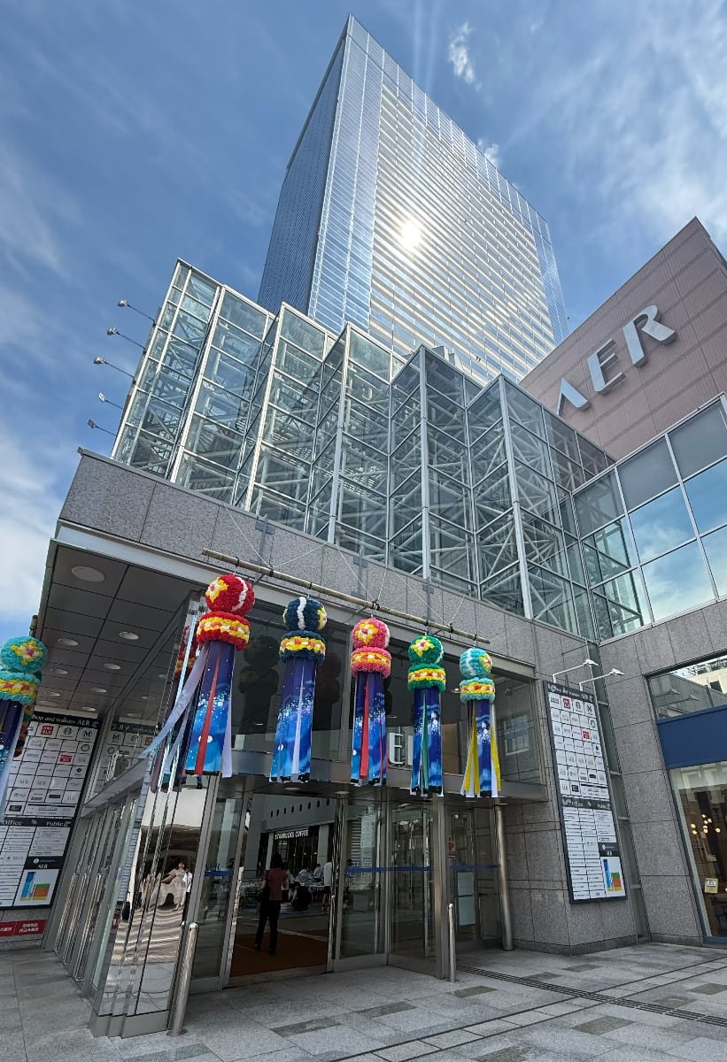 今回のイベント会場となった「TKPガーデンシティ仙台」が入るビル、AERの入口も七夕祭りの吹き流しが涼しげです。