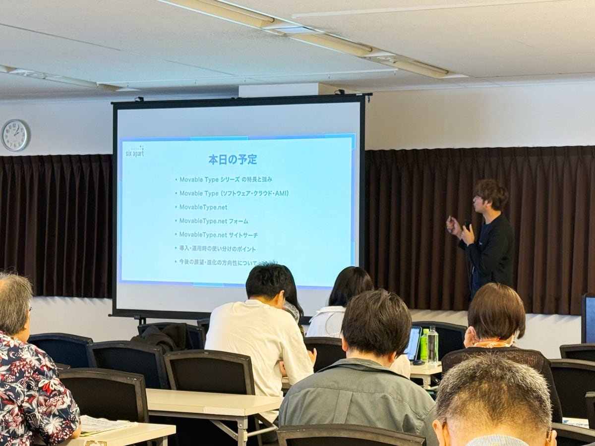 今秋にメジャーバージョンアップ予定の「Movable Type 9」を控えている「Movable Type」のソフトウェア版・クラウド版・AMI版のラインナップとその特長、高機能SaaS型CMS「MovableType.net」はノーコード編集領域を作れることで話題の「かんたんデザイン編集機能」については詳しめにご説明しつつ、フォームやサイトサーチなどの関連サービスも合わせてご紹介しました。