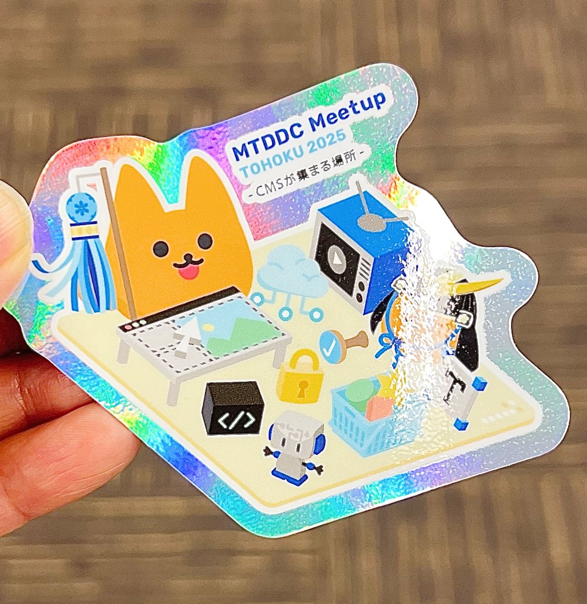 この下の写真は、今回の MTDDC Meetup TOHOKU 2025 限定特別ノベルティとして作ったキラキラトフステッカーです✨