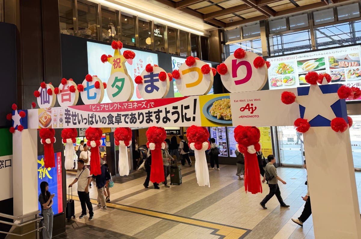 仙台駅や町並みは、8/6-8に開催される「仙台七夕まつり」一色の雰囲気で華やかでした。