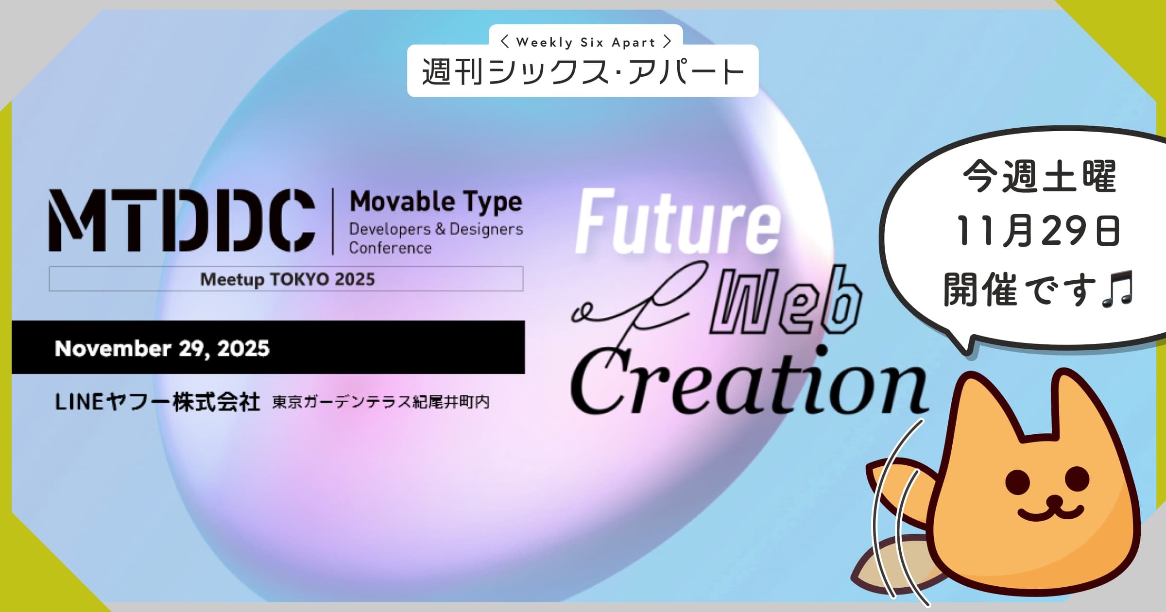 Movable Type 東京地域のコミュニティ「MT東京」メンバー中心の運営チームが開催するカンファレンスイベント MTDDC Meetup TOKYO 2025、ついに今週土曜の開催です!シックス・アパートもこのイベントにさまざま協力しています。