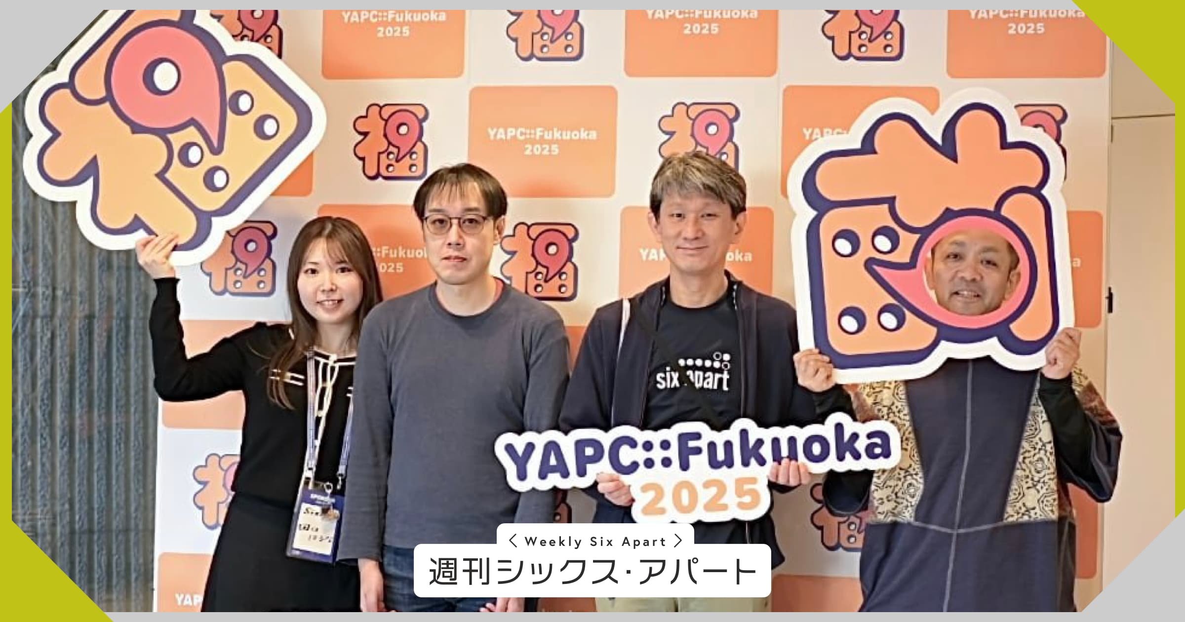 2025年11月14-15日に福岡工業大学で開催された「YAPC::Fukuoka 2025」、シックス・アパートはこのイベントに Platinum スポンサーとして協力しました。現地でイベントに参加してきた、サポートエンジニアの田口による参加レポートをお届けします。