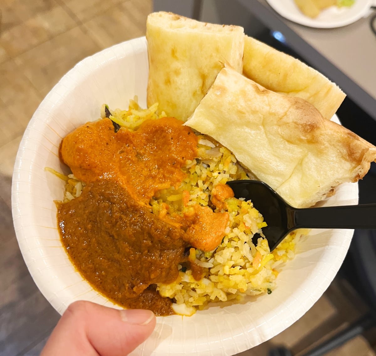 カレーだけ食べたい人のために、ナンも準備しました。盛り付けたのが、下の写真です。美味しくて何回もおかわりしてる人、たくさんいましたね〜!