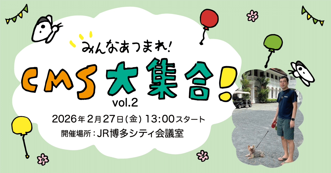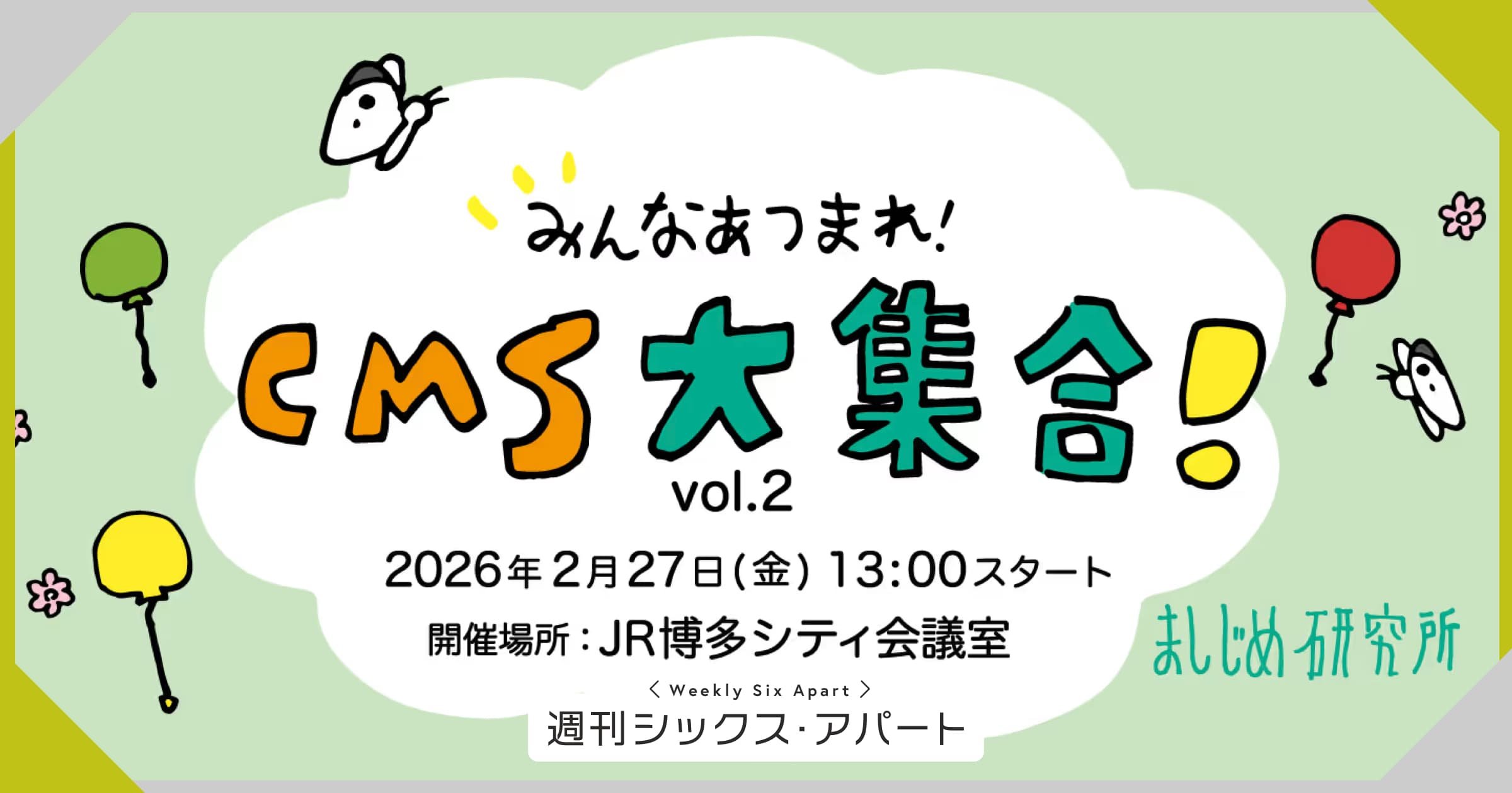 2026年2月27日(金)、福岡・博多で開催されるイベント「CMS大集合!Vol.2」に、シックス・アパートは、ゴールドスポンサーとして協賛しています。