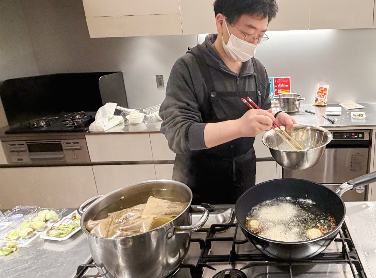 他にも野菜や調味料や飲み物などを用意して、今回もキッチン付きレンタルスペース「Patia 神保町店」に集合して調理スタートです。