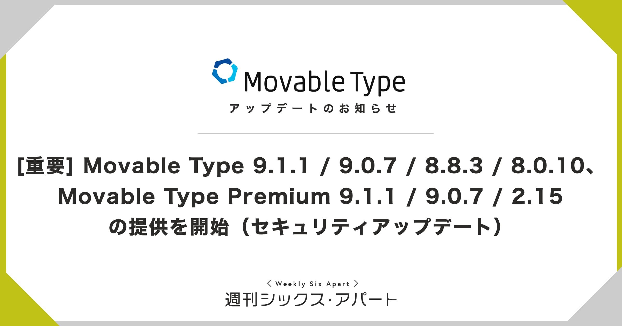 Movable Type に深刻な脆弱性が存在することが判明いたしました。この脆弱性を修正した最新版を公開しています。すでにEOLとなっているバージョンもこの脆弱性の影響を受けます。お手数をおかけしますが、できるだけ速やかに最新版へのアップデートを行なっていただくか、回避策の実施をお願いします。